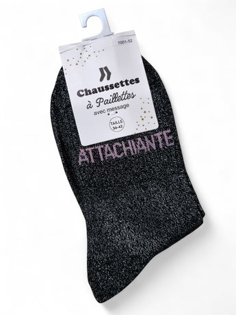 Chaussettes pailletées à message ATTACHIANTE| Couleur aléatoire