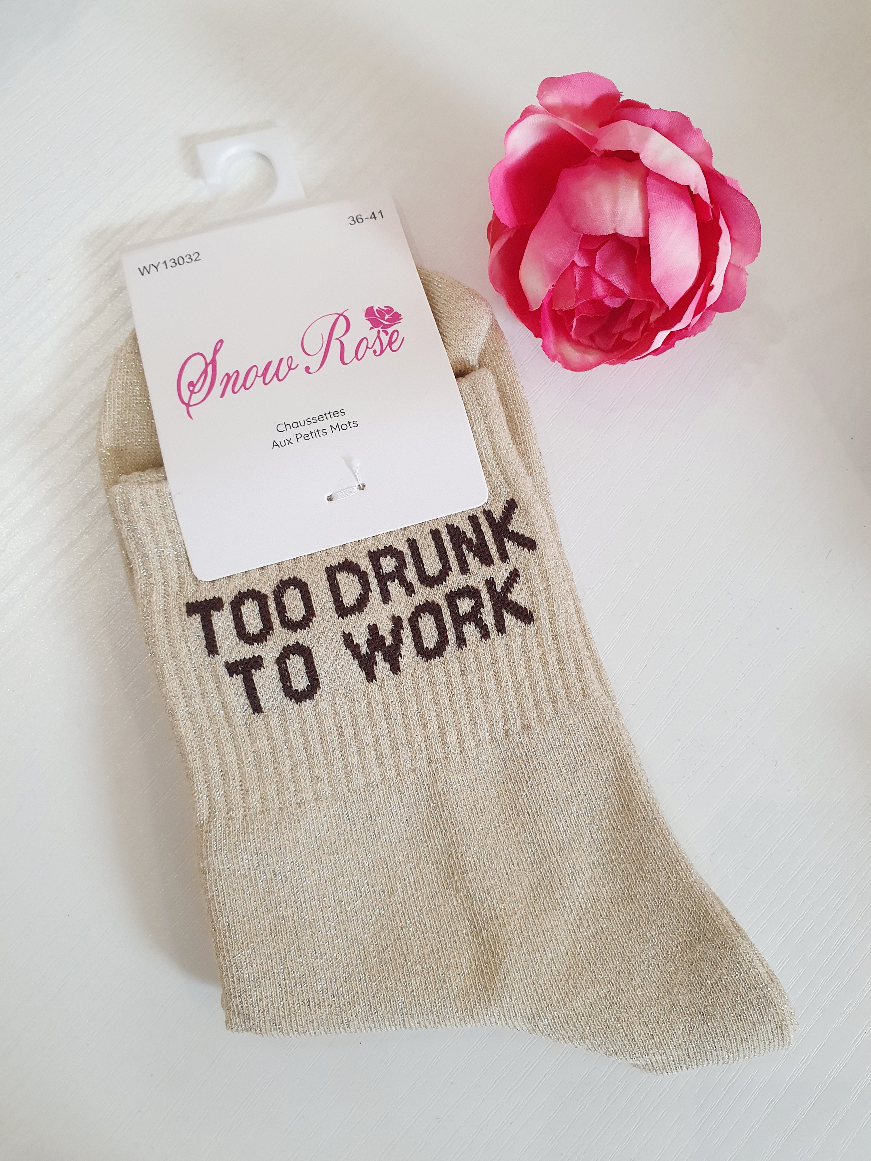 Chaussettes pailletées à message TOO DRUNK TO WORK | Beige