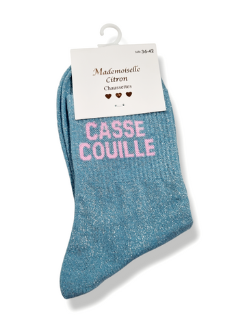 Chaussettes pailletées à message CASSE-COUILLE | Couleur aléatoire