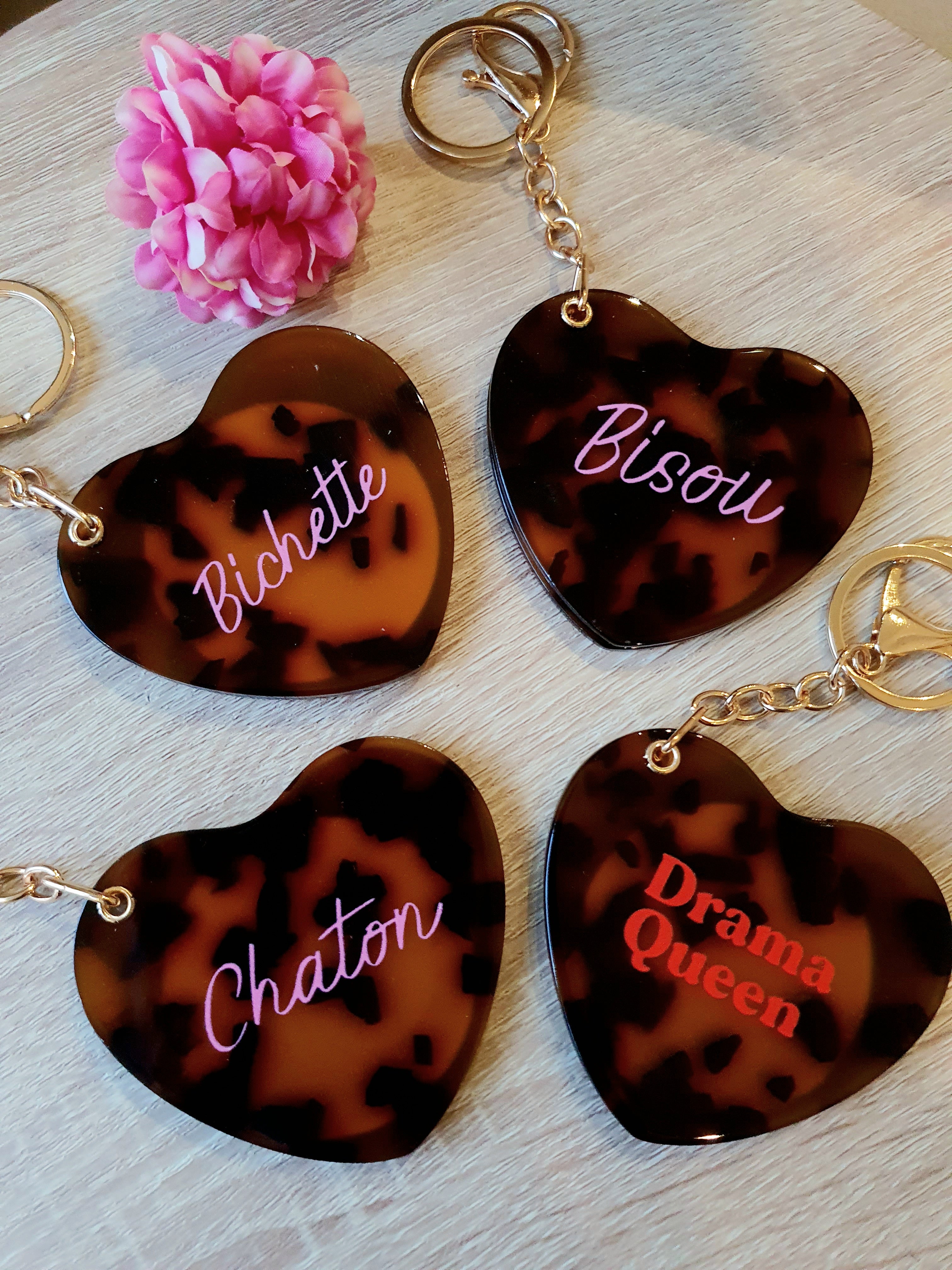 Porte-clés miroir léopard cœur message