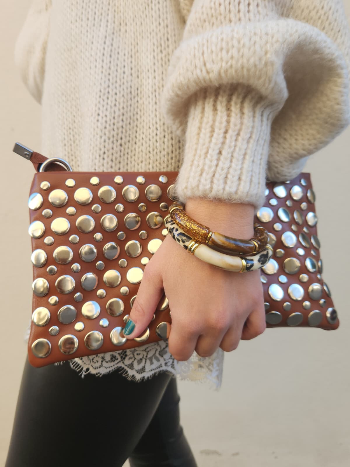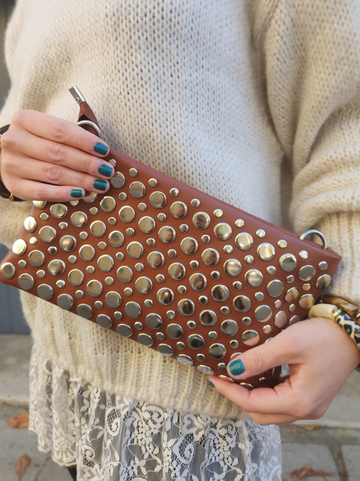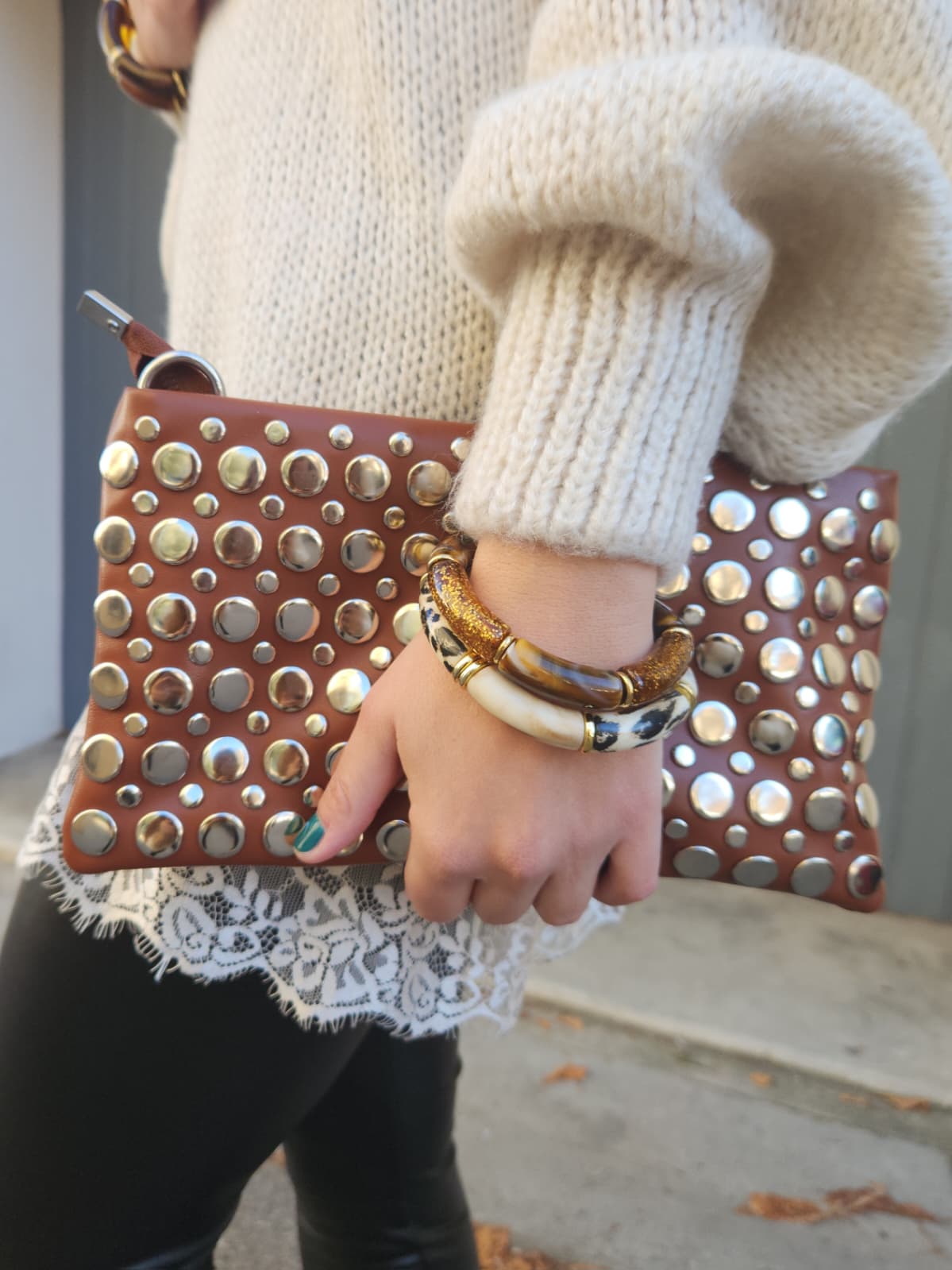 Pochette clouté - chocolat