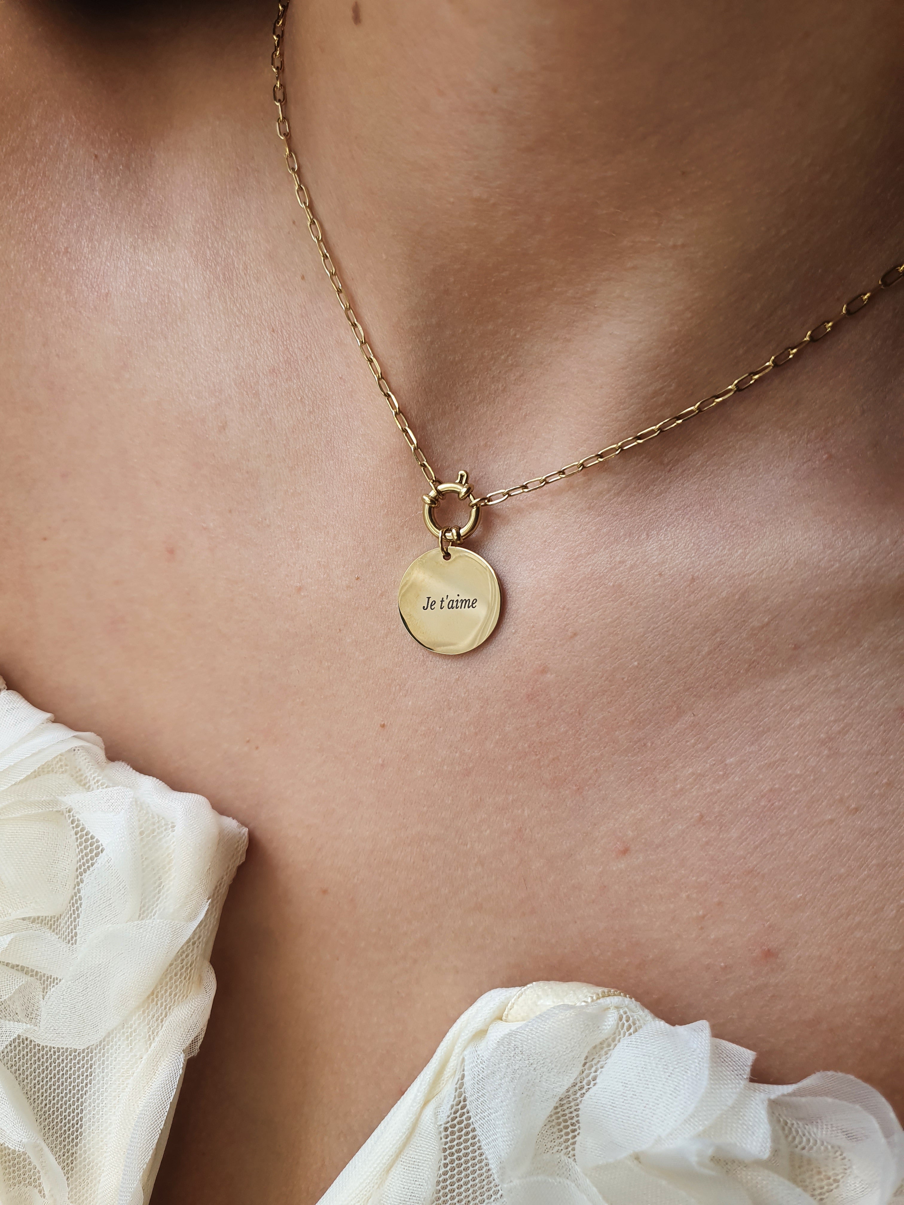 Collier médaillon pampille à graver - doré