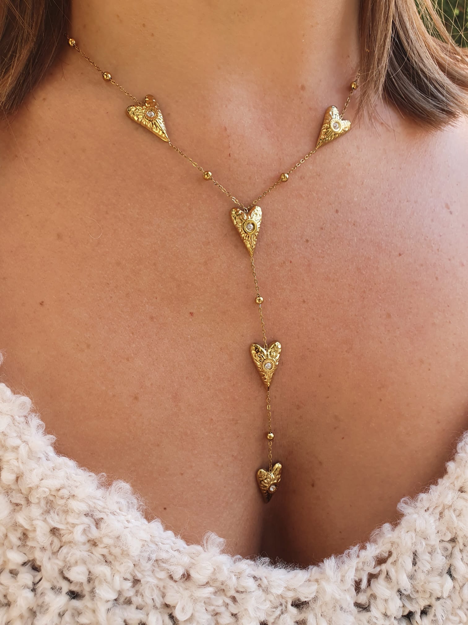 Sautoir coeurs & strass - doré