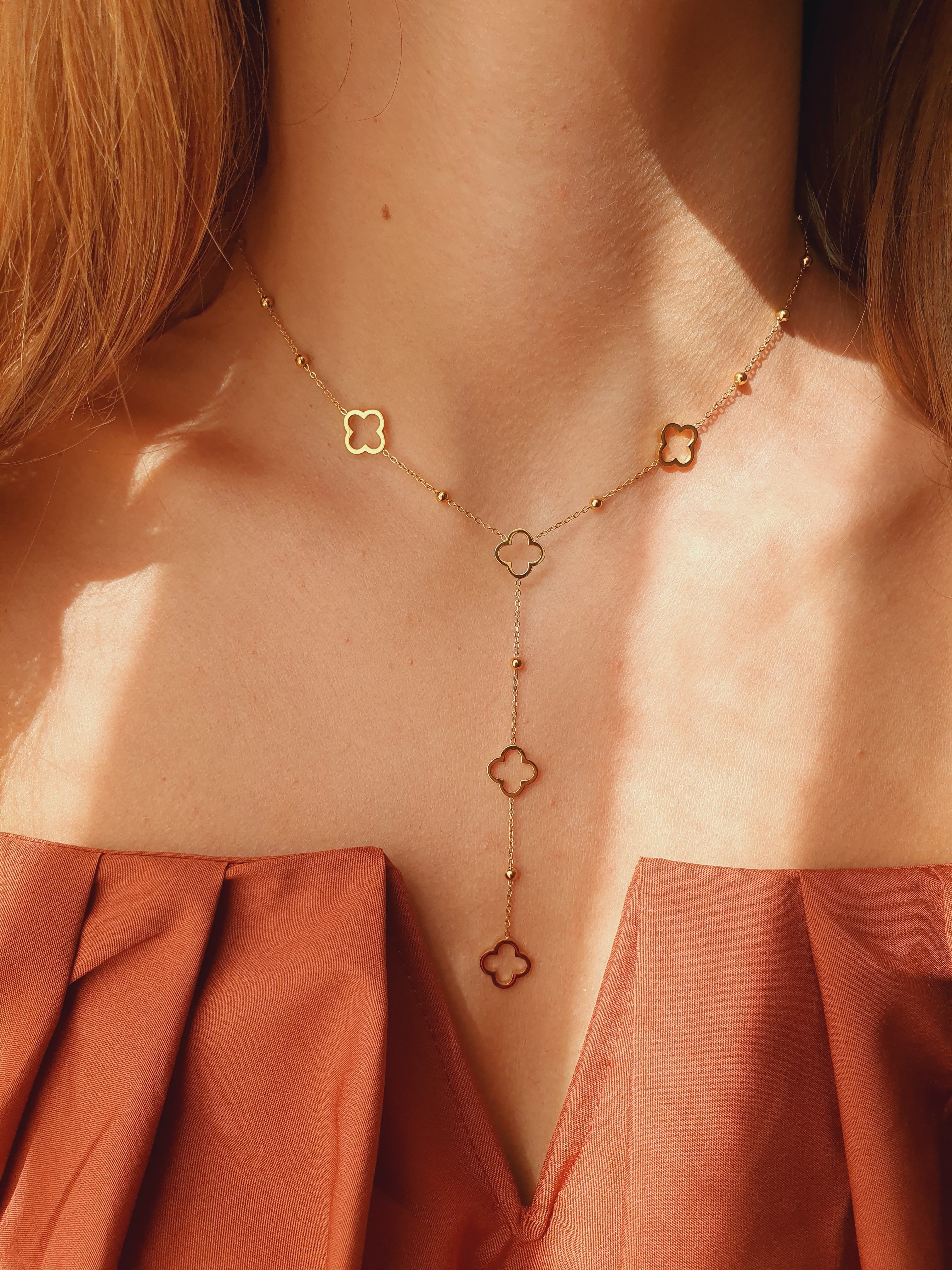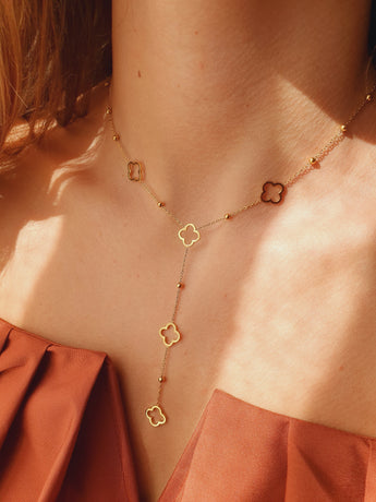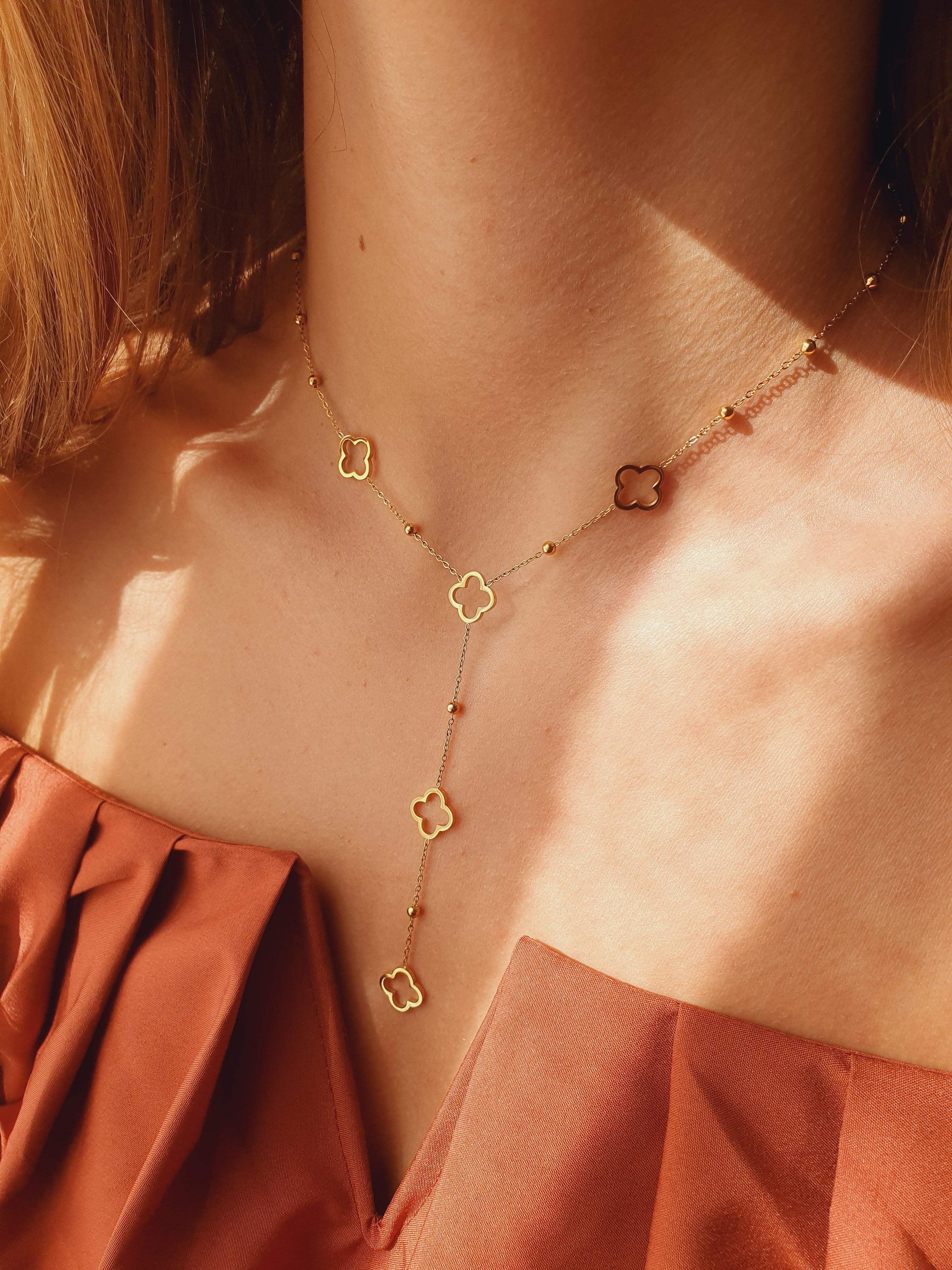 Sautoir en Y trèfles - doré