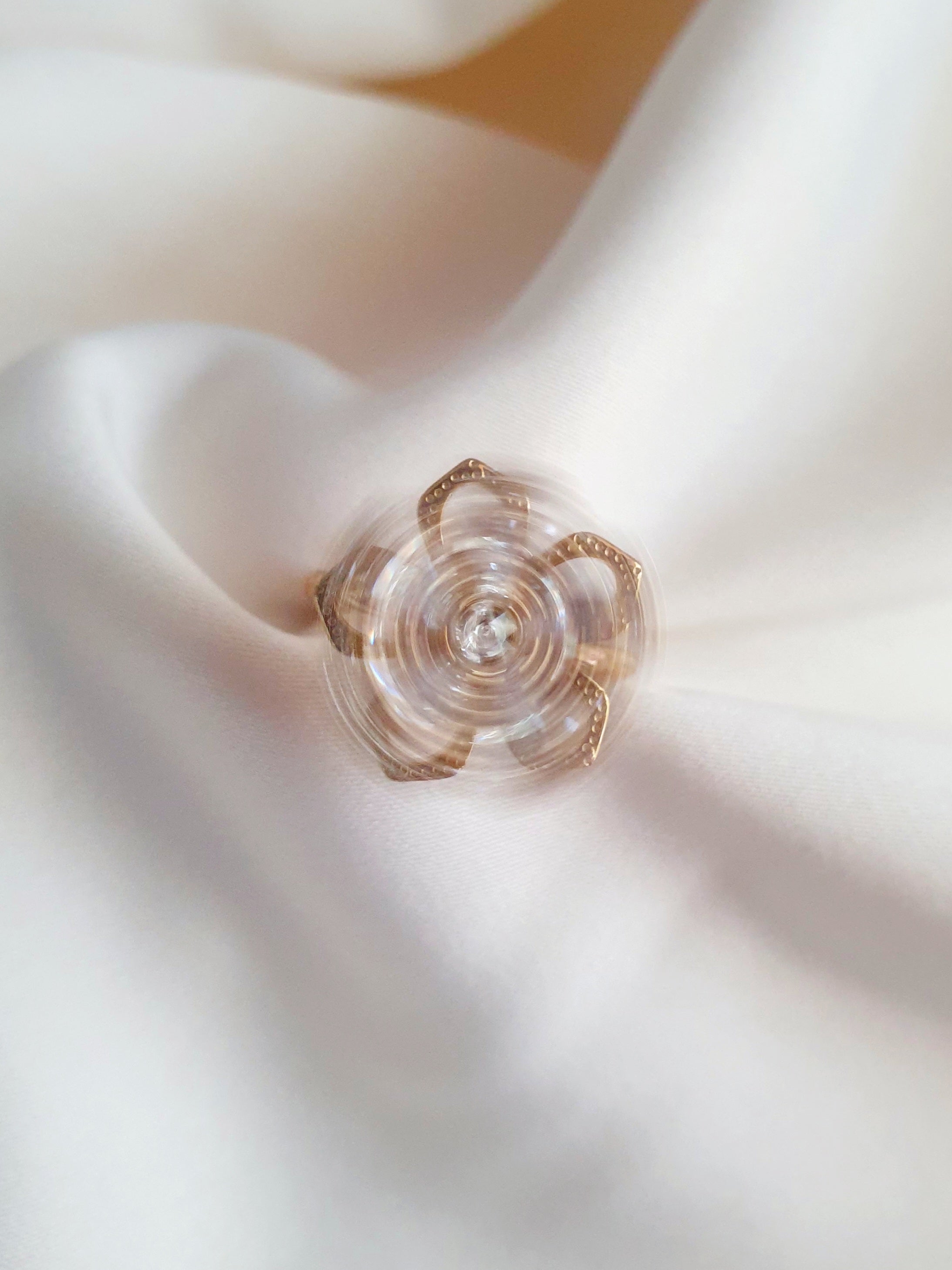 Apaisez votre esprit avec notre bague rotative anti-stress en forme de fleur luxueusement sertie. Conçue en acier inoxydable et ornée de pierres étincelantes, cette bague est bien plus qu’un simple bijou : c’est un accessoire bien-être à porter au quotidien dont vous ne pourrez plus vous passer !