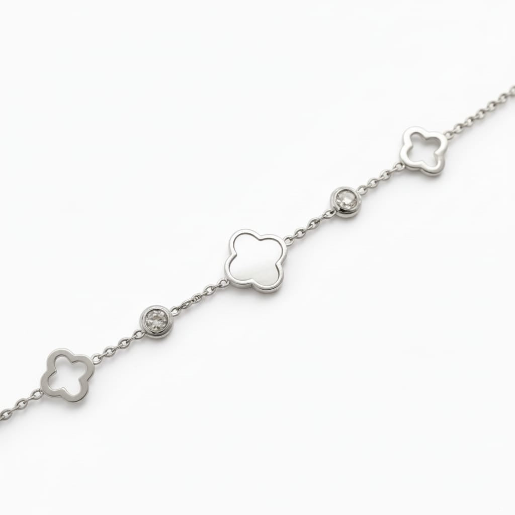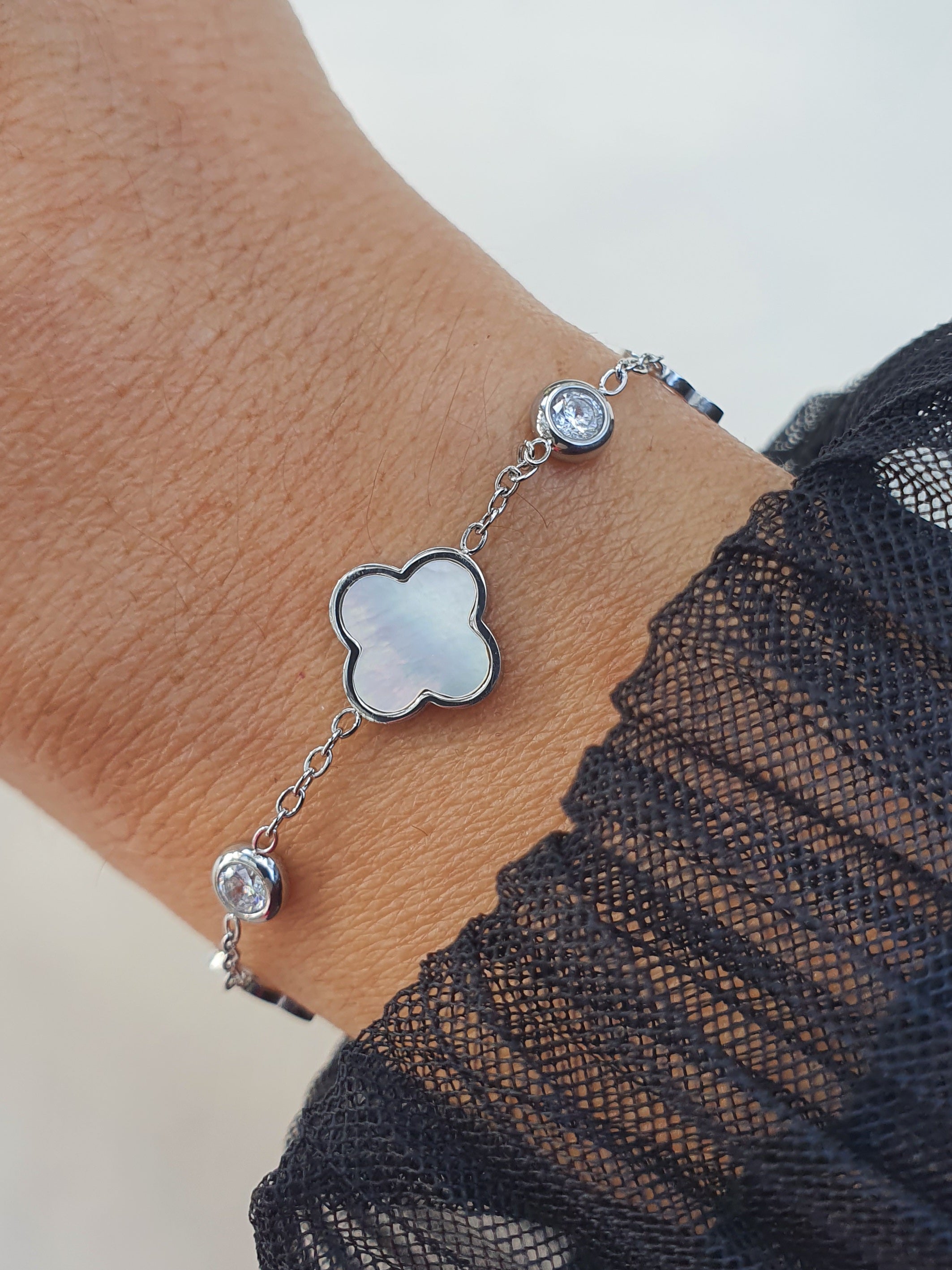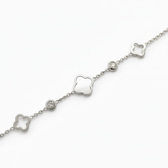Bracelet trèfle & zircons - argenté/nacre