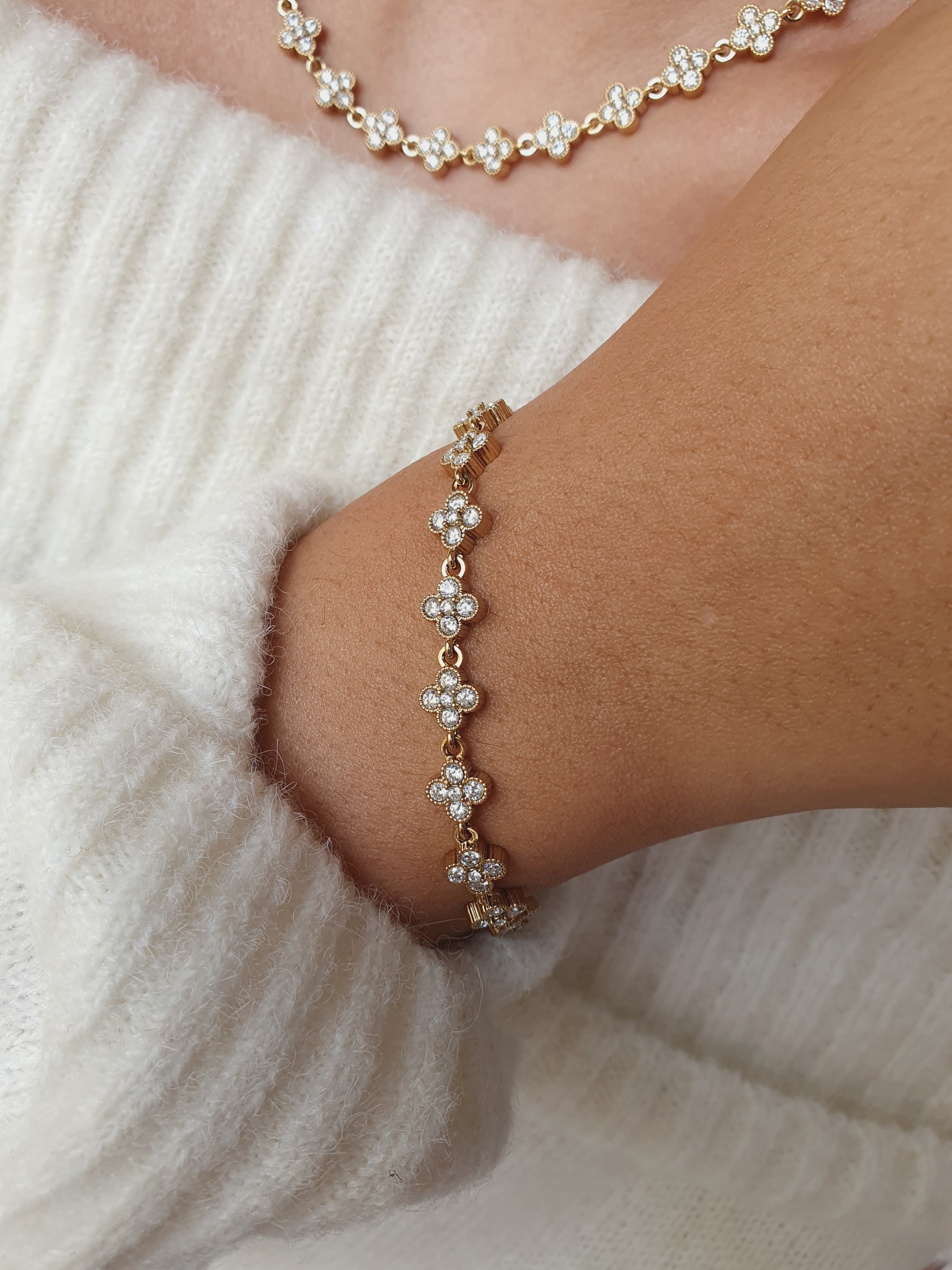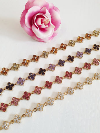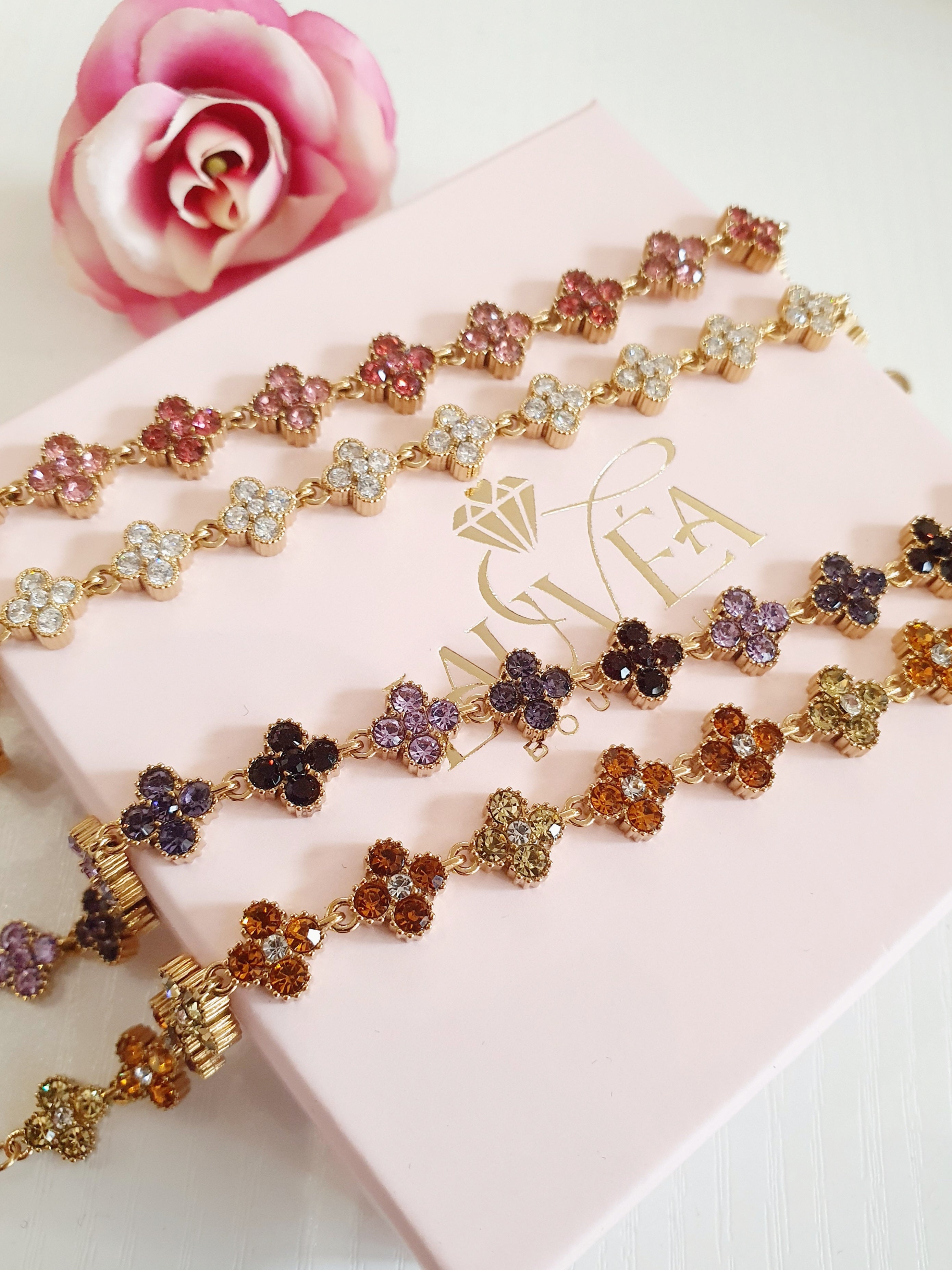 Bracelets fleurs de cristal - doré | Coloris au choix