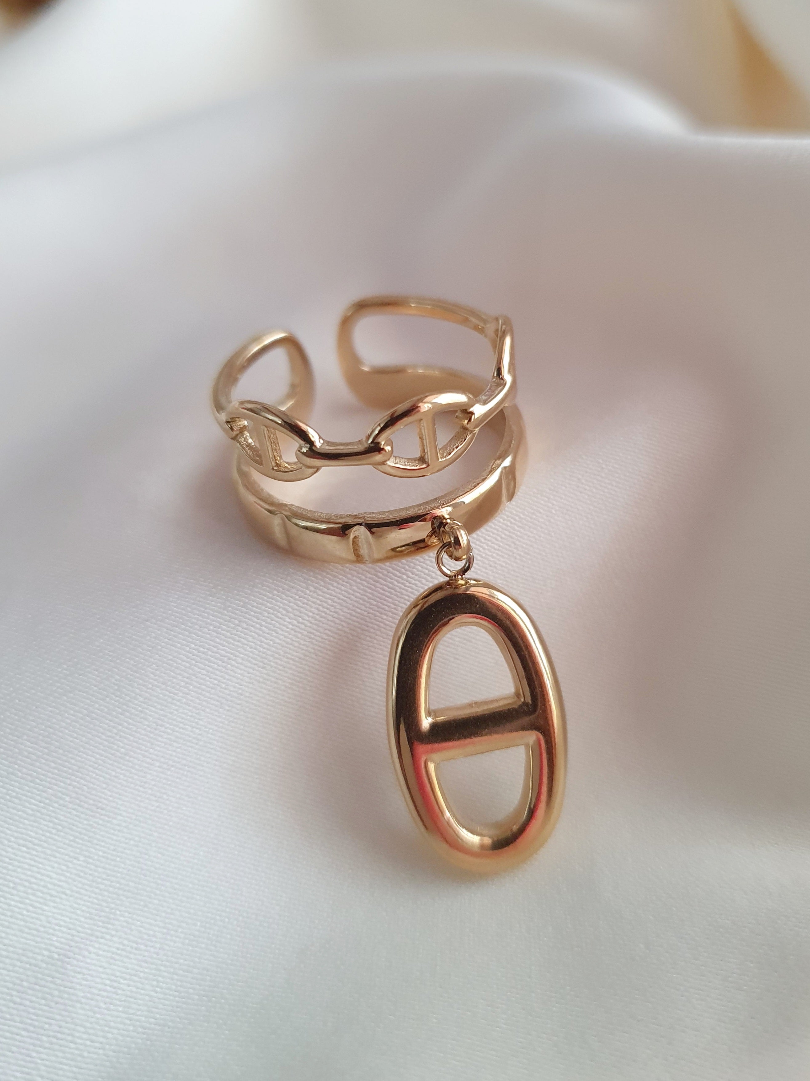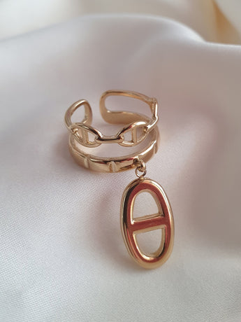 Magnifique bague en acier inoxydable orné d'une breloque également composée en acier inoxydable.