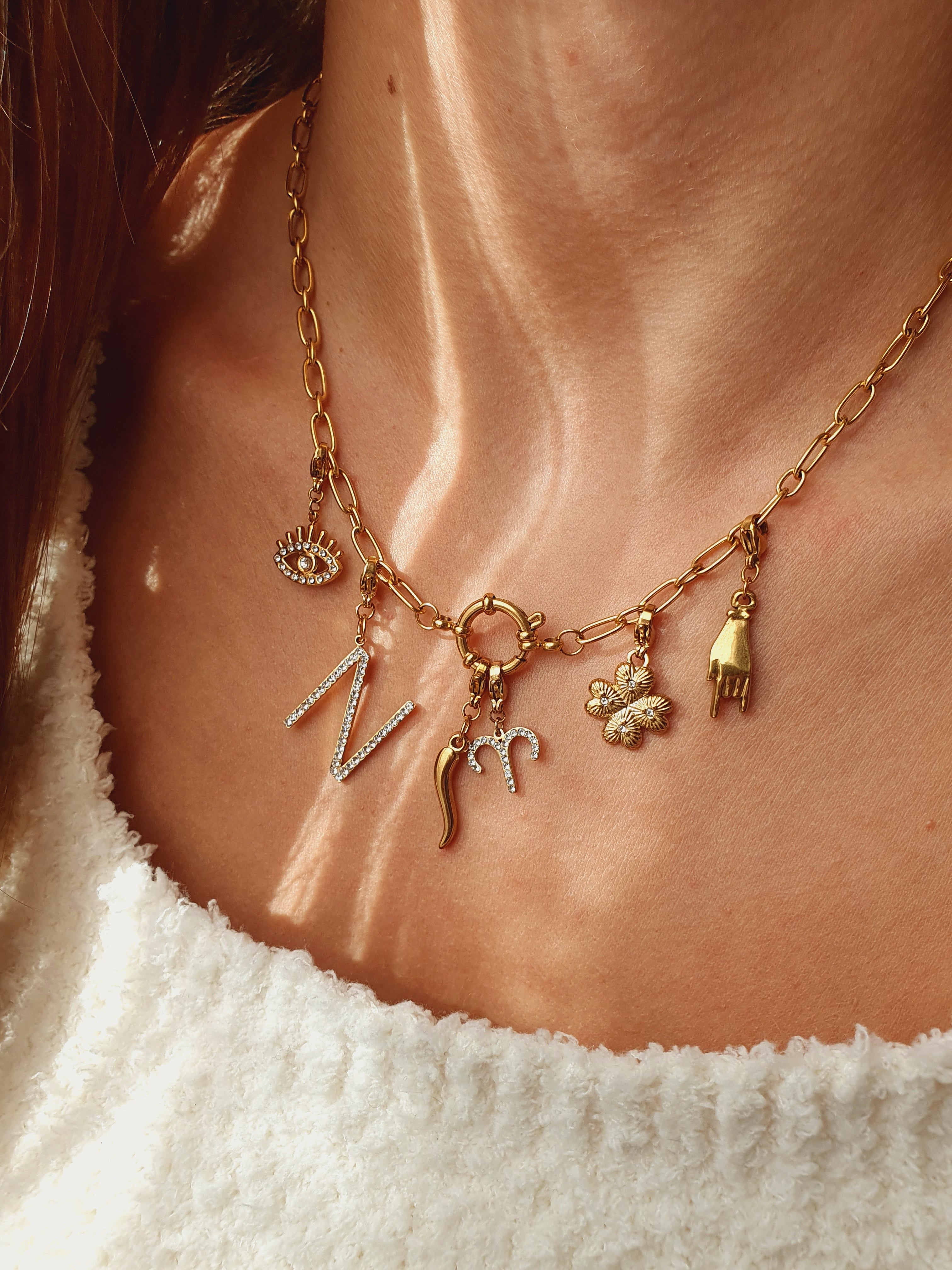 Imaginez un collier qui raconte votre histoire… Ajoutez-y des charms lettres, symboles, pierres naturelles ou signes astrologiques : chaque maillon devient une page à écrire, chaque combinaison une création personnelle.