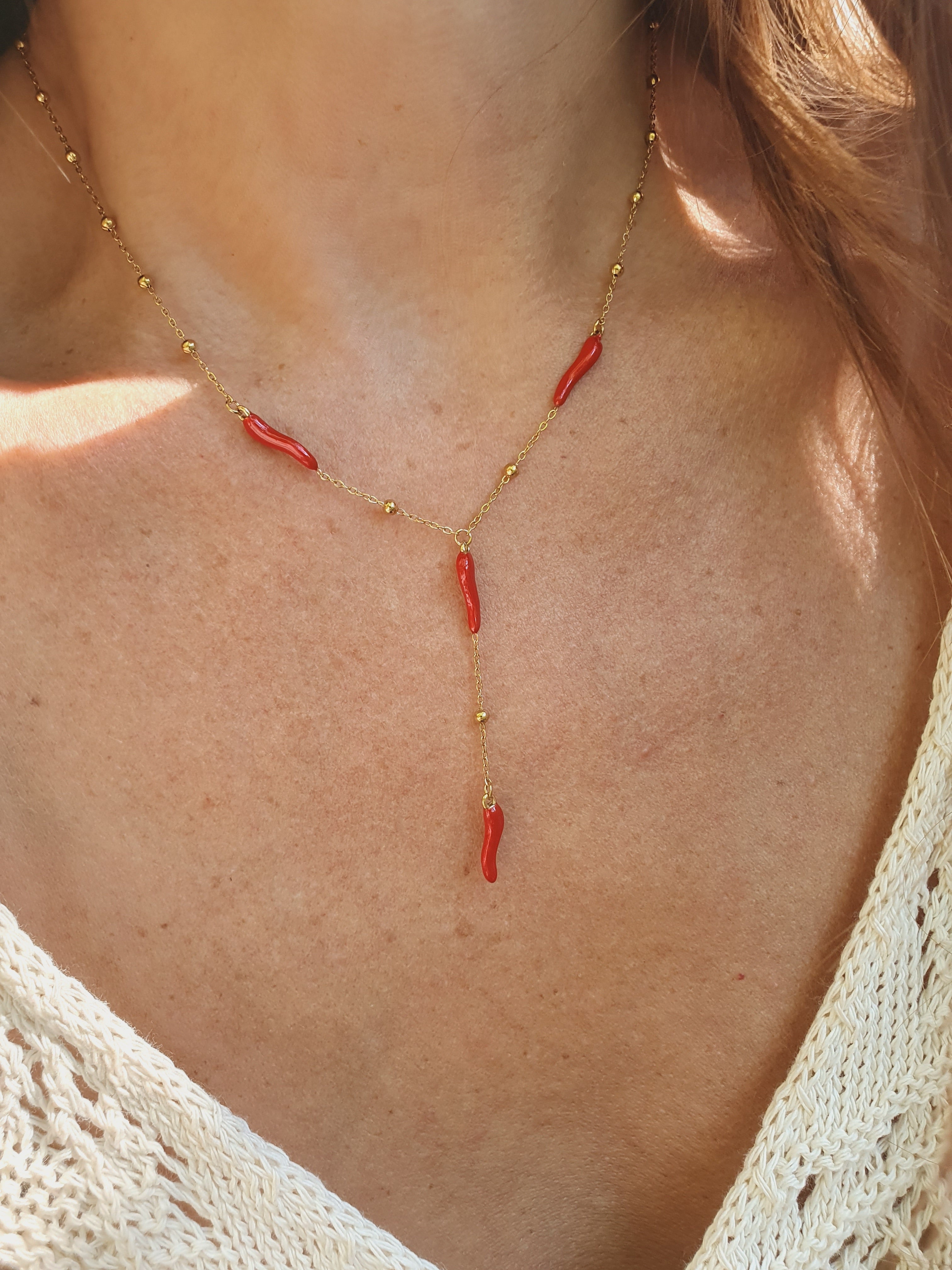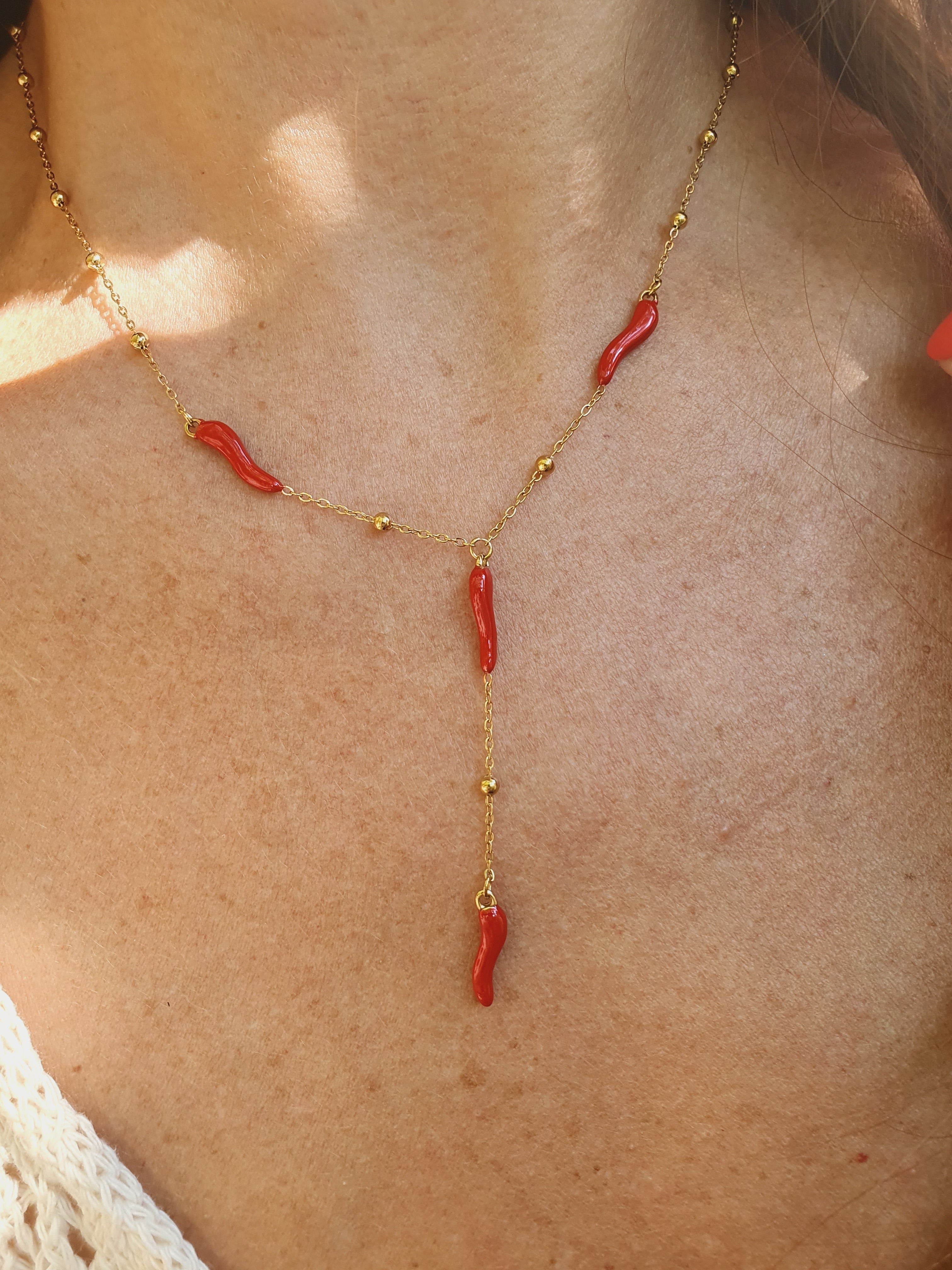 Sautoir en Y Cornicello Napoletano - doré (piments rouges)