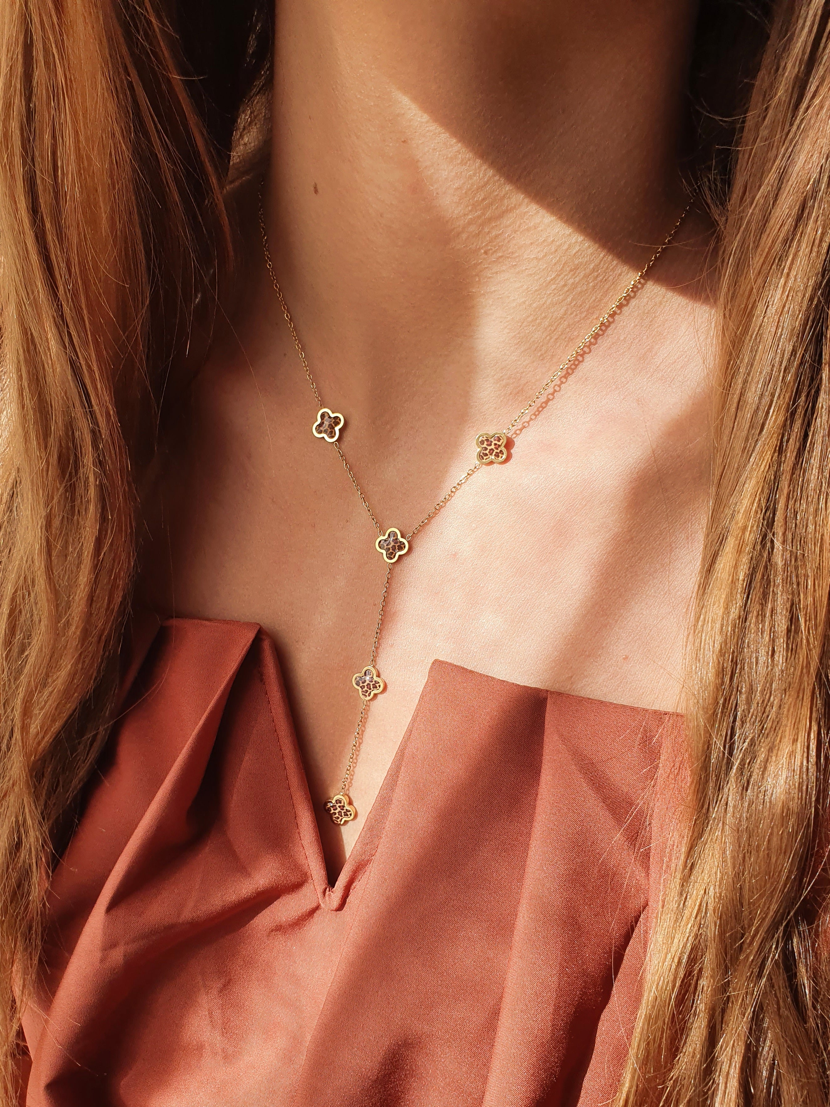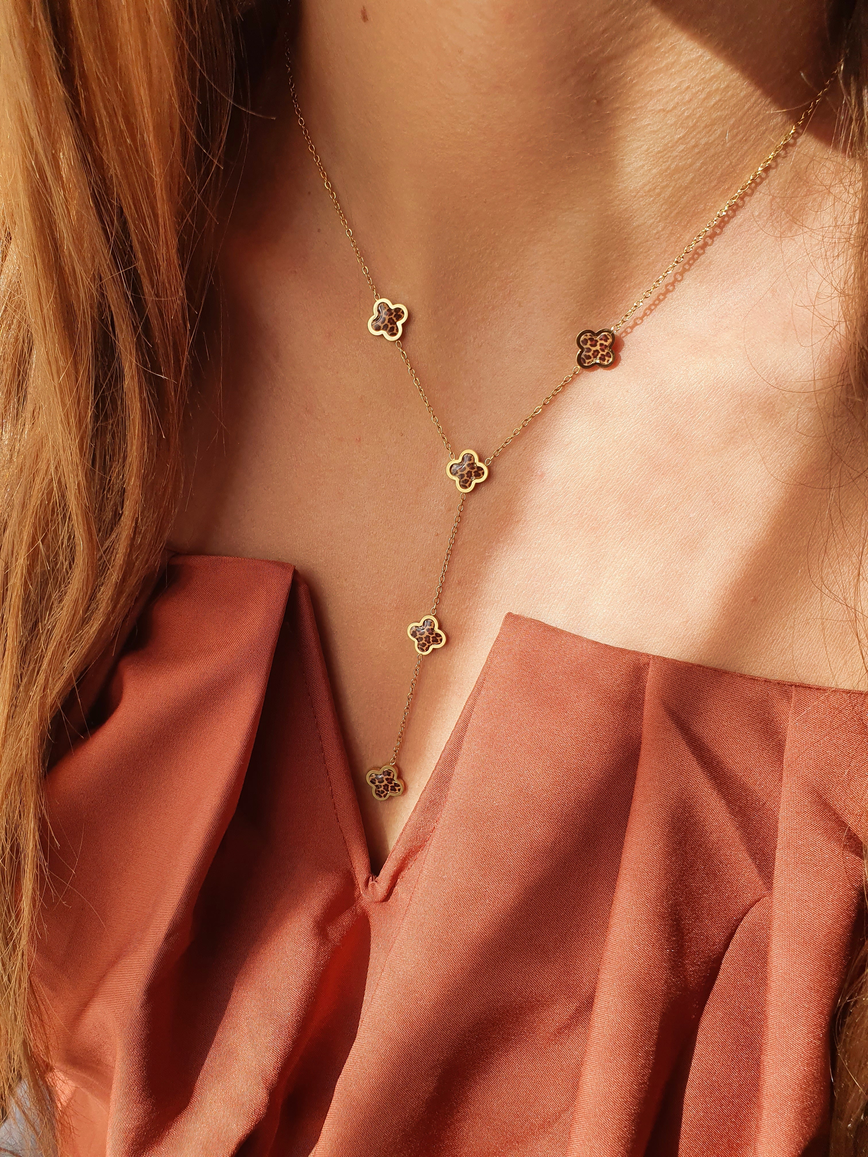 Sautoir trèfles léopard - doré